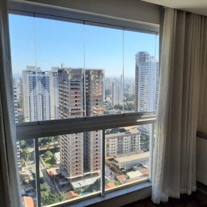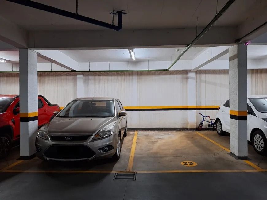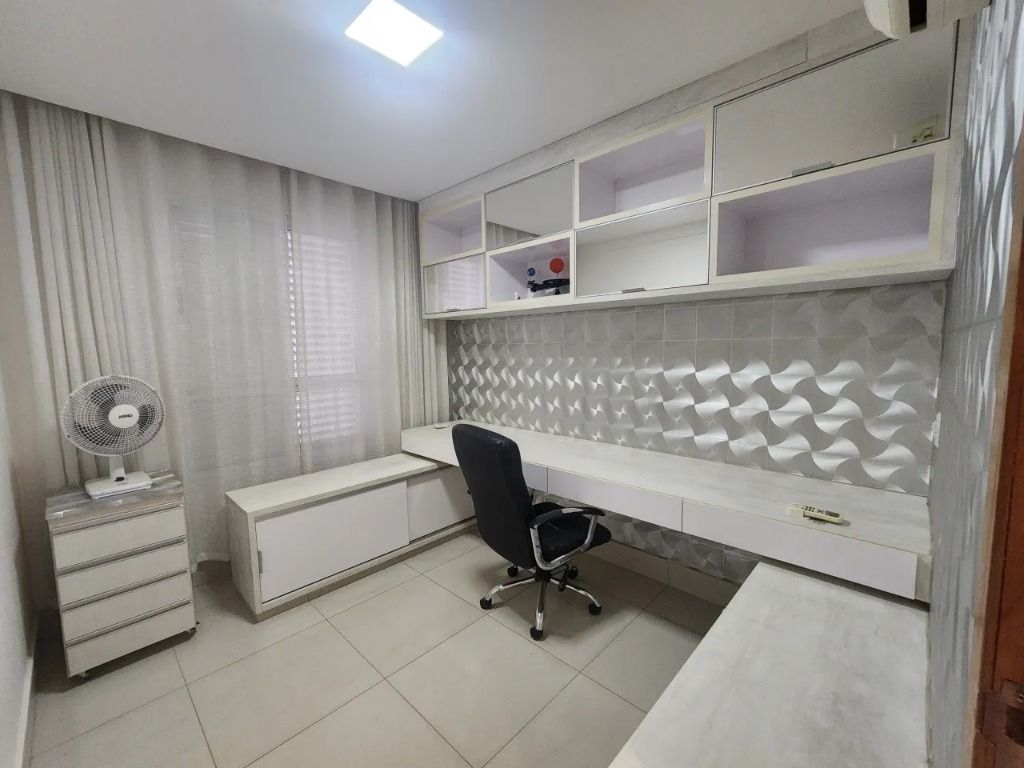 1 quarto atualmente configurado como escritório (reversível), acabamento de alto padrão e completo em armários planejados, 2 vagas de garagem paralelas + 1 escaninho.