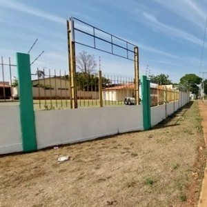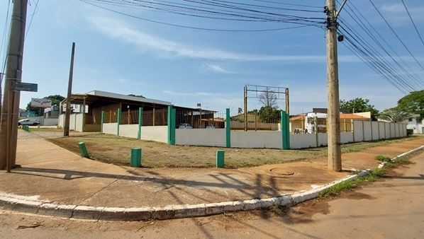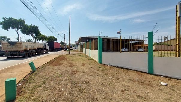 Terreno comercial murado com construção urbana.