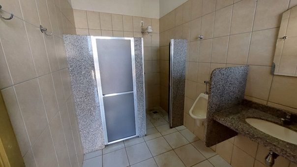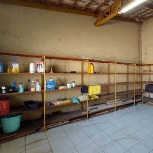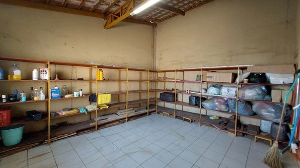 Almoxarifado, um banheiro amplo, sala para alojamento/apoio.