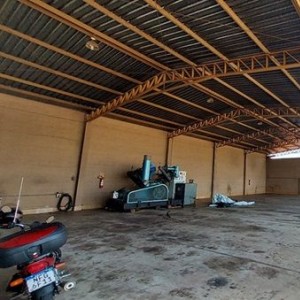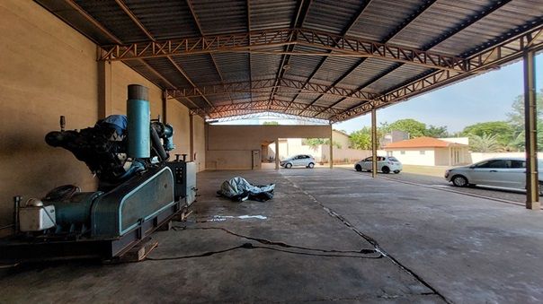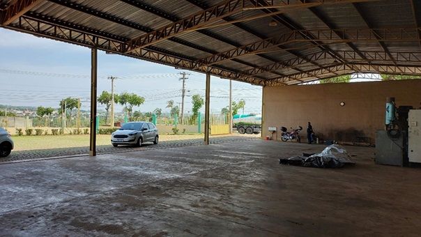 Trata-se atualmente de um imóvel comercial, contendo: um amplo galpão aberto, com a área de cobertura de 419,00m², telha galvanizada, pé direito de aproximadamente 7,00m² de altura, uma rampa para lavagem/troca de óleo de máquinas pesadas, piso em cimento concreto usinado.